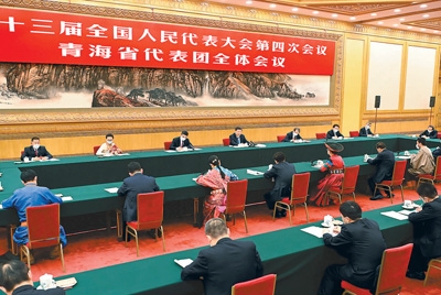 3月7日,中共中央總書(shū)記、國家主席、中央軍委主席習近平參加十三屆全國人大四次會(huì )議青海代表團的審議。新華社記者 李濤攝